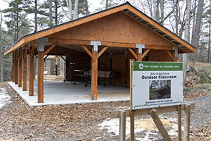 The newly completed Outdoor Classroom has a roof, is open on three sides and is equipped with picnic tables. There should be no need for you to bring your own chairs (except for personal comfort!), and we will be good to go in rain or sun.